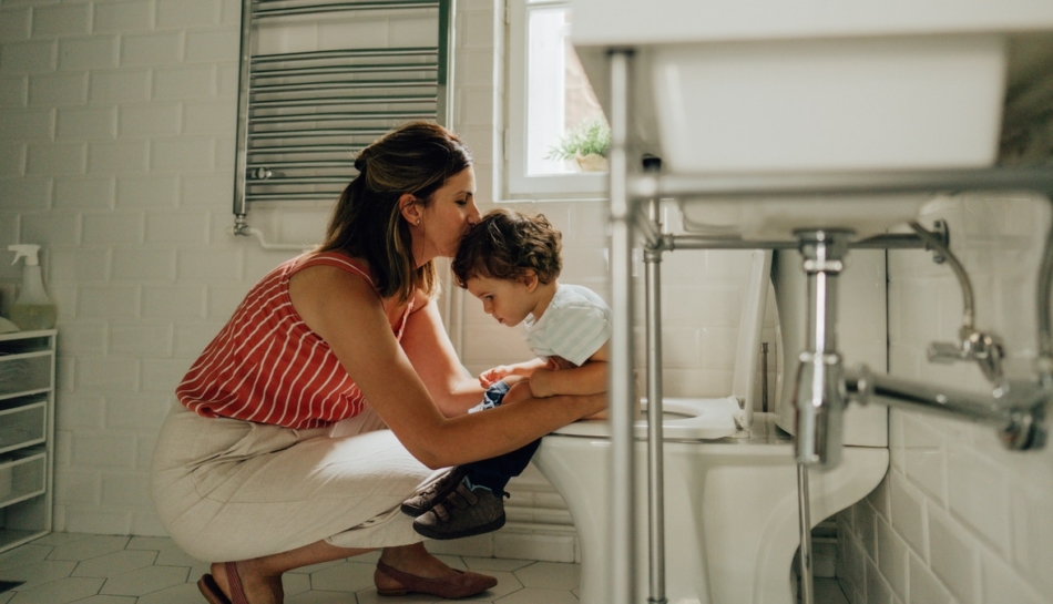 mamma bacia bambino al bagno con diarrea