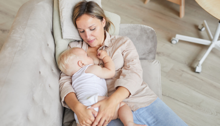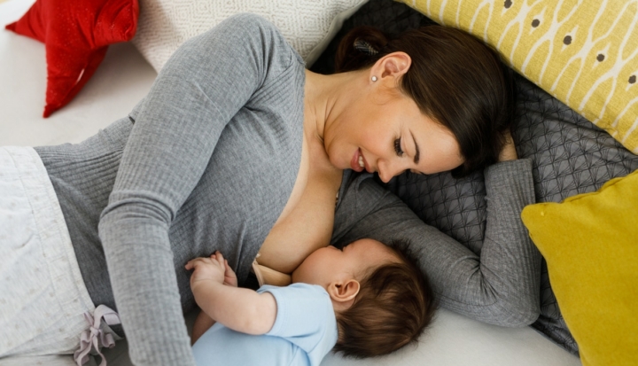 La posizione sdraiata è molto amata, soprattutto di notte, perché permette alla mamma di riposare e contemporaneamente di allattare il neonato. Questa posizione è utile nel primo post-partum, specialmente in caso di taglio cesareo, in quanto il neonato non grava sulla ferita.